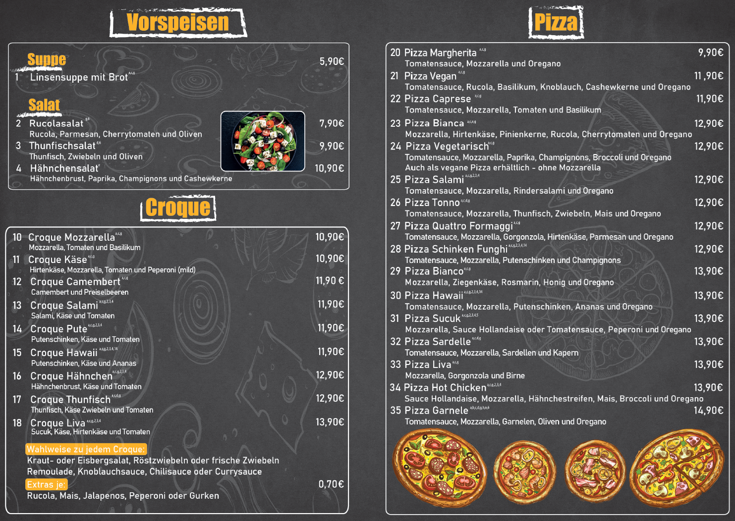 Pizza, Pasta, Croques, Salate, Börek & mehr. Frisch zubereitet für jeden Geschmack